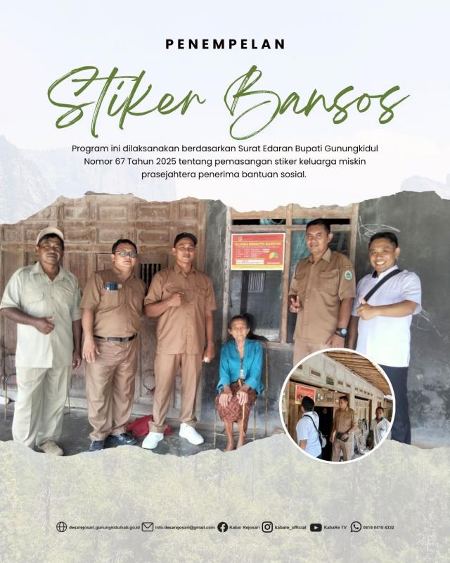 Lurah Rejosari, H. Sunarto, S.Pd, M.Pd yang turut membersamai kegiatan menjelaskan, Program ini dilaksanakan berdasarkan Surat Edaran Bupati Gunungkidul Nomor 67 Tahun 2025 tentang pemasangan stiker keluarga miskin prasejahtera penerima bantuan sosial.